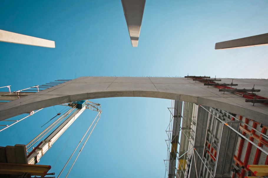 Die großen Betonflächen des Arkadengebäudes, darunter zwei der großen, innen liegenden Arkaden, wurden mit Dilatationsfugen erstellt, um die Bildung von Spannungsrissen durch unterschiedliche Ausdehnungseigenschaften der Werkstoffe in der filigranen Konstruktion zu vermeiden. Dazu trug auch der Beton bei, der auf einem speziellen, von Lafarge gelieferten Zement als Bindemittel basiert und für geringe Rissneigung in tragenden Konstruktionen steht.
