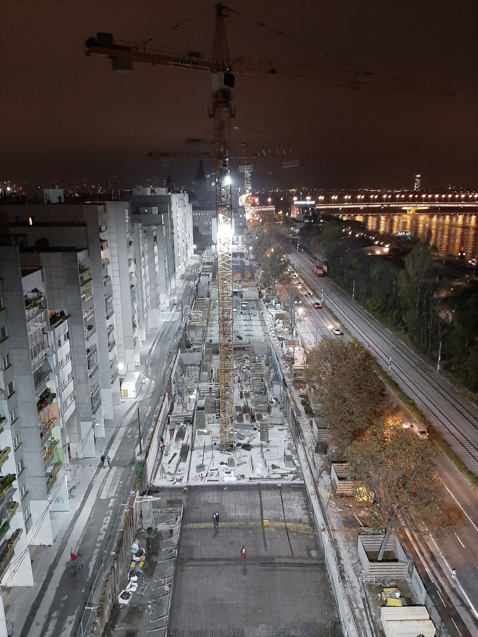 Die städtische Wohnbaugesellschaft WIGEBA beauftragte die GERSTL BAU GmbH & Co. KG mit der Errichtung der Wohnanlage Handelskai 214A. Die rechteckigen Gebäudegrundrisse sind in einer Linie, wie an einer Perlenkette aufgefädelt, auf dem schlanken, 450 m langen Grundstück im belebten Viertel Leopoldstadt angeordnet. Sieben Häuser mit je zwei Parkebenen, Erdgeschoss und sechs bis zehn Obergeschossen wurden pünktlich im Sommer 2022 fertiggestellt. Manche Herausforderung galt es zu meistern: anspruchsvolle Baustellenlogistik, einen eng getakteten Zeitplan, intensive Koordination. Sechs Krane waren gleichzeitig im Einsatz und es musste, geschossweise versetzt, mit möglichst wenig Material gearbeitet werden.