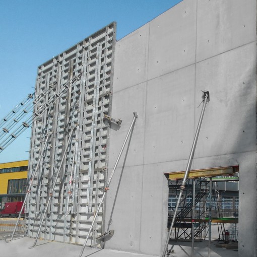 Sämtliche Ortbetonwände wurden mit dem Wandschalungssystem StarTec und mit Elementhöhen 270 und 135 cm geschalt. Die universelle Schalung aus Stahl mit vollflächiger Frischbetondruckaufnahme von 60 kN/m² lässt sich mit wenigen Verbindungsteilen effizient nutzen und einfach handhaben.