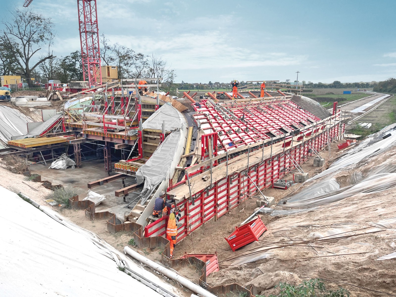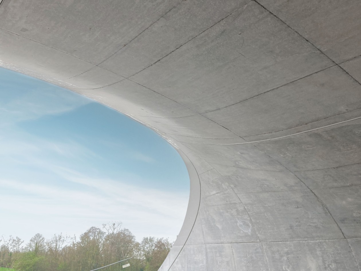Das Bauwerk ist ein Blickfänger mit seinem konkav geformten Tunnelgewölbe und zwei unterschiedlichen, trompeten- bzw. froschmaulförmigen Unterführungseingängen. Die MEVA-Abteilung für Sonderschalung unterstützte die Umsetzung des aufwendigen Projekts mit komplexen Vorarbeiten und plante neben der Schalung auch eine für hohe Lastabtragung geeignete Traggerüstkonstruktion.