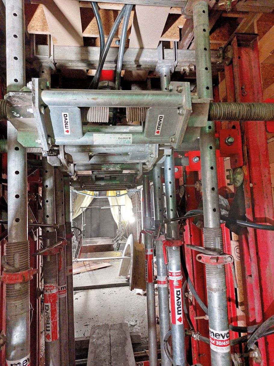 Das Know-how der MEVA-Abteilung für Sonderschalung zahlte sich insbesondere bei der Planung der komplexen Überschneidungsbereiche aus. So wurden clevere Lösungen entwickelt, die mehrfach einsetzbar waren und die Logistik auf der engen Baustelle entlasteten.