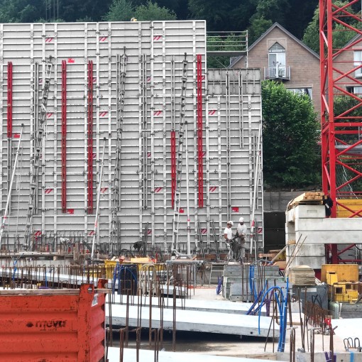 Herausforderungen dieses Projekts sind Zeitdruck und die komplexe Logistik auf und neben der Baustelle, die am stark frequentierten Boulevard Lalaing zentrumsnah in der 70.000 Einwohner zählenden Stadt liegt. Das verantwortliche Konsortium der Bauunternehmen Galère, CIT Blaton, Dherte und Tradeco setzt auf die Deckenschalung MevaDec in Kombination mit den Traggerüstsystemen MEP und MT 60, um die Spannbetondecken schnell und in der geforderten Qualität herzustellen. Unterstützt wird die Arbeit auf der Baustelle auch mithilfe der Revit-Planung durch MEVA BeNeLux.
