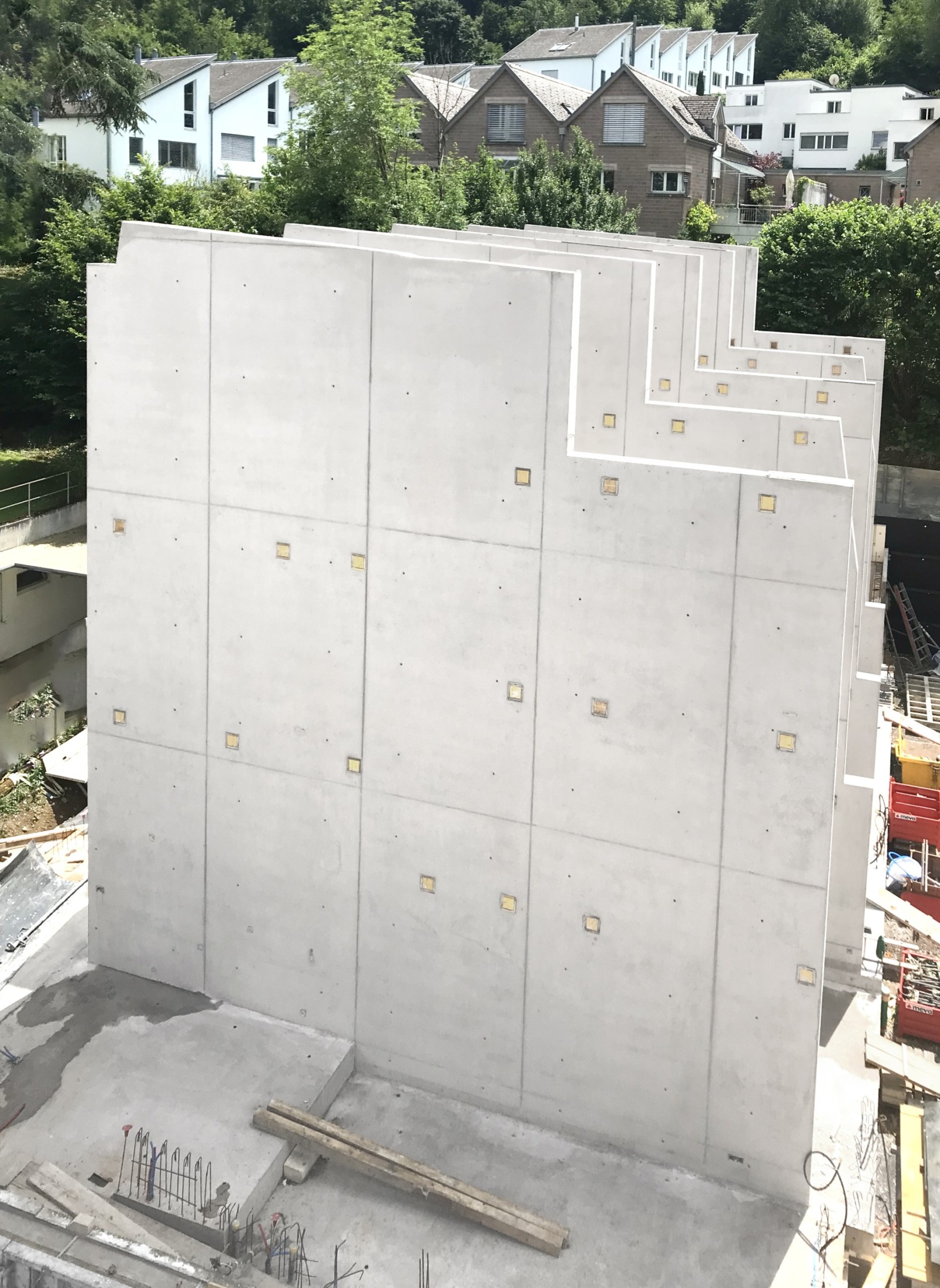 In the Swiss town of Baden twelve single-family terraced houses are being built. Hächler AG Hoch- und Tiefbau created each large-format party wall between the individual houses in a single cycle. The result meets the concrete surface quality required by the principle as well as the architects’ and the construction company’s expectations.