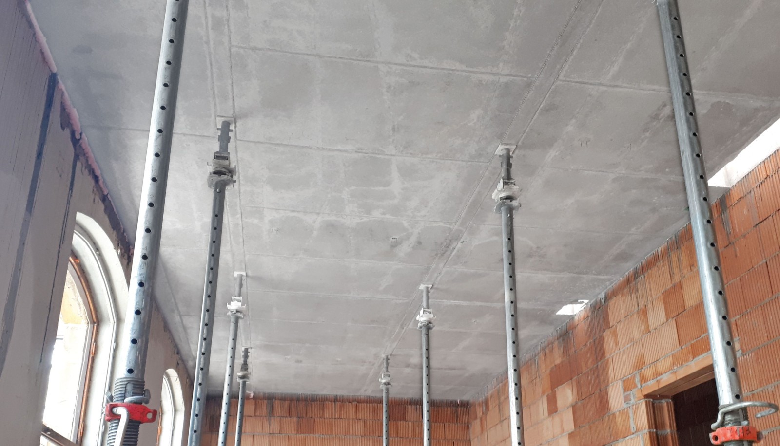 For GERSTL, the construction company responsible, this meant section-by-section deconstruction and renovation within the existing structure. Walls were adapted, new walls built and the timbered ceilings had to give way to sturdy reinforced concrete slabs. The roof truss and the roofing itself were, to a large extent, replaced. As the spatial conditions were predefined by the existing structure, it was necessary to use a particularly flexible, easy-to-handle formwork system. For this reason, the GERSTL team relied on the slab formwork MevaDec and used 400 m² of panels for a total slab surface of 2,500 m².