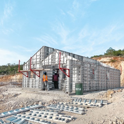 The completed first phase of Menzi Heights was designed as economical housing, with each unit measuring 42 m². The ongoing phase 2, aimed at social housing, features units of 32 m². With the assistance of MEVA’s MonoFix system, the project aims to construct 300 units within a year, a feat that would be challenging with conventional construction methods.