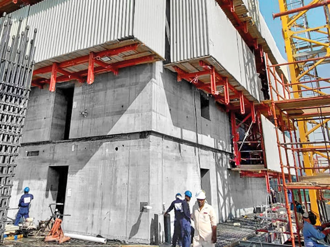 The construction company Dubai Contracting Company L.C.C. (DCC) specialises in high-rise buildings with climbing formwork. After intensive discussions with a team led by MEVA UAE Sales Manager Mahmoud Siksek, the deal was finalised. DCC relied on the German formwork specialist‘s technology for the first time to erect the central core – the backbone of the structure, so to speak. The around 30 x 20 m core extends to the top floor and contains numerous other core walls for staircases and lifts.