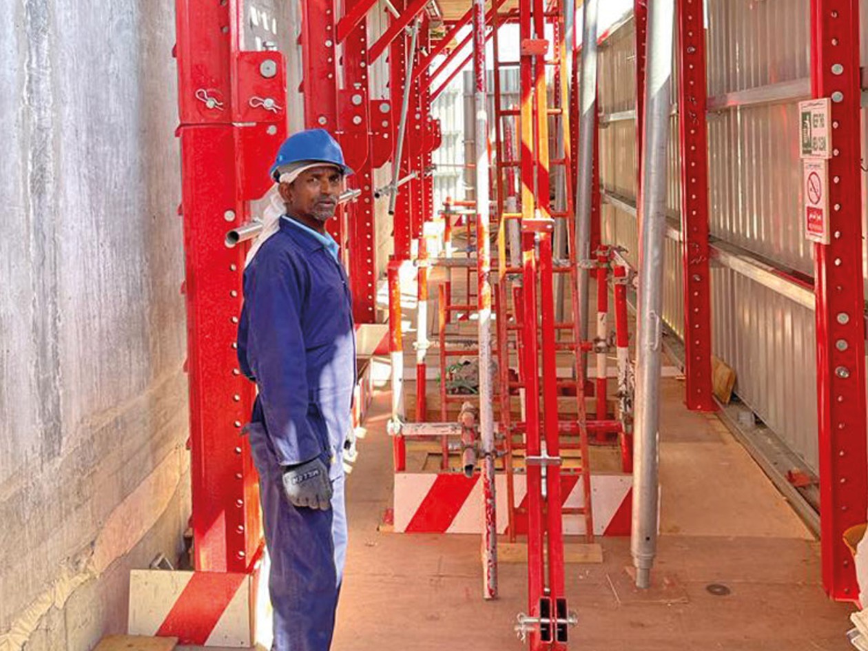 The climbing formwork was assembled 24/7 on the construction site. As DCC had no previous experience with MEVA, the construction teams on site were intensively supervised and trained by MEVA supervisors. They were soon able to work independently. MEVA‘s method statements – step-by-step instructions for the safe use of the technology – also provided support.