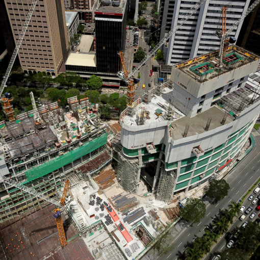 This megaproject required more than 13,000m² of alkus facing, 20,000m² of Mammut wall formwork, 73,000 linear metres of MevaFlex, 16,000 MEP shoring towers, over 1,100 tonnes of steel and 52 gantry cranes that MEVA constructed and built specifically for this project. After the concrete works began in 2016, the work progressed as scheduled thanks to the formwork solutions developed for these sites and the contractor’s clever and efficient management of all the challenges.