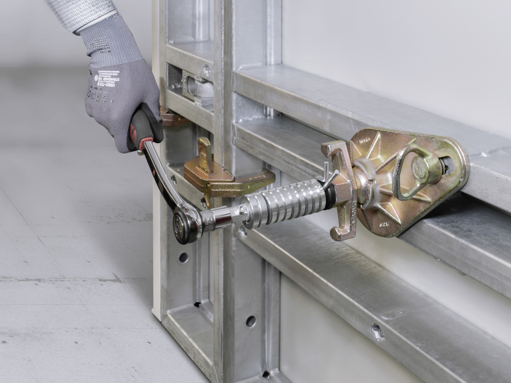 Thanks to the integrated combination tie hole recessed in the frame, you can select between three tying methods with a flick of the wrist. No additional parts need to be installed for single-sided tying, saving you time. Simplifying the choice of tying method best suited to the project significantly reduces the formwork placing time. The flush integrated combination tie hole also enables the panels to be stacked without having to remove parts beforehand.