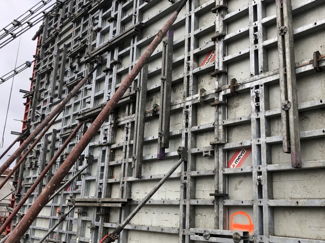 A large wall such as this is exactly what the Mammut XT wall formwork system was designed for. The combination tie hole provides a high level of efficiency and flexibility, while the large panel surface area makes logistics simpler as fewer panels are required.