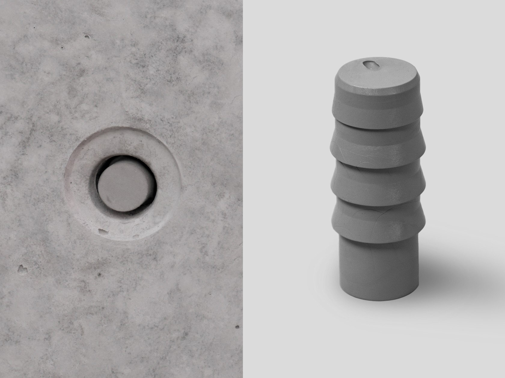 The watertight internal seal for flush, single-sided use in formwork tie holes when using XT taper ties 23. It seals against hydrostatic pressure and is resistant against chemicals.