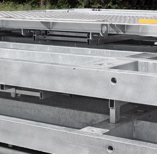 The system can be assembled – whether lying down or upright – without tools, bolts or pins. The heaviest individual part weighs no more than 15 kg. The complete tower unit is relocated by crane or on rollers. All parts are hot-dip galvanised.