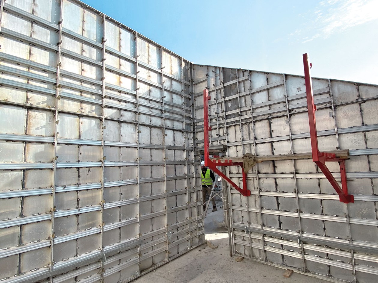 The experienced construction company invested in 970 m² of MonoFix formwork elements and relies on the strengths of the monolithic system when numerous, identically cut houses are to be built in large numbers – economically, efficiently and without complications. The formwork proved its worth right from the start and, thanks to its easy handling, the formwork, which consists entirely of aluminum elements, enabled rapid construction progress.