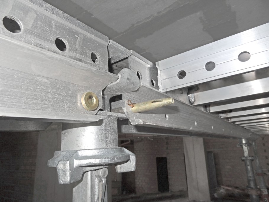 In this project the innovative drop head for early stripping and accordingly shorter cycles paid off. The primary beams and panels were lowered by using a hammer, then stripped, and used for the next cycle while the slab that had just been formed was supported by the props and continued to harden. The outcome? Rapid construction progress, only a small amount of material stored on-site, simple logistics.