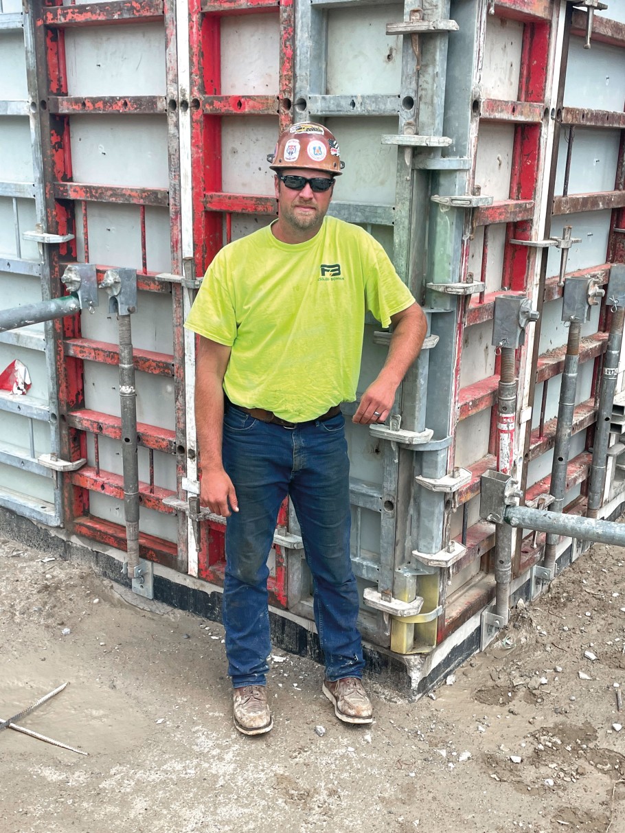 Chad Walker (left), Superintendent with Fessler & Bowman, is convinced by the easy handling of the Imperial wall formwork system and with the good concrete results.