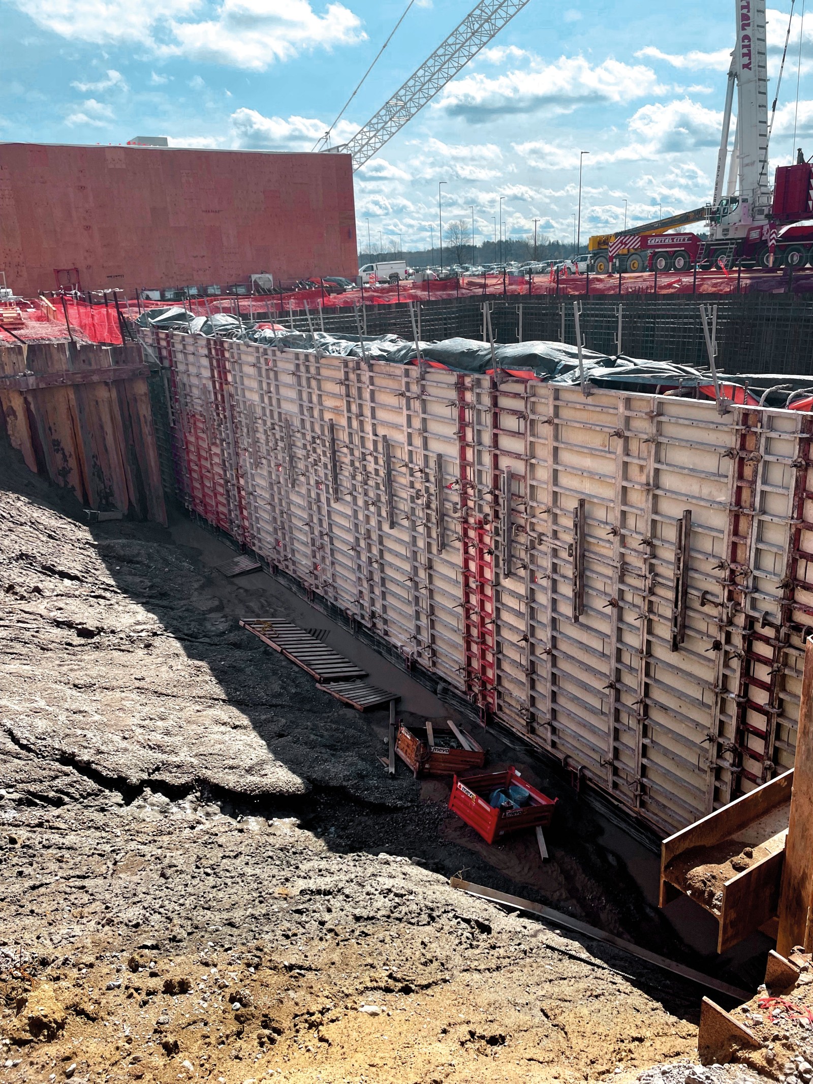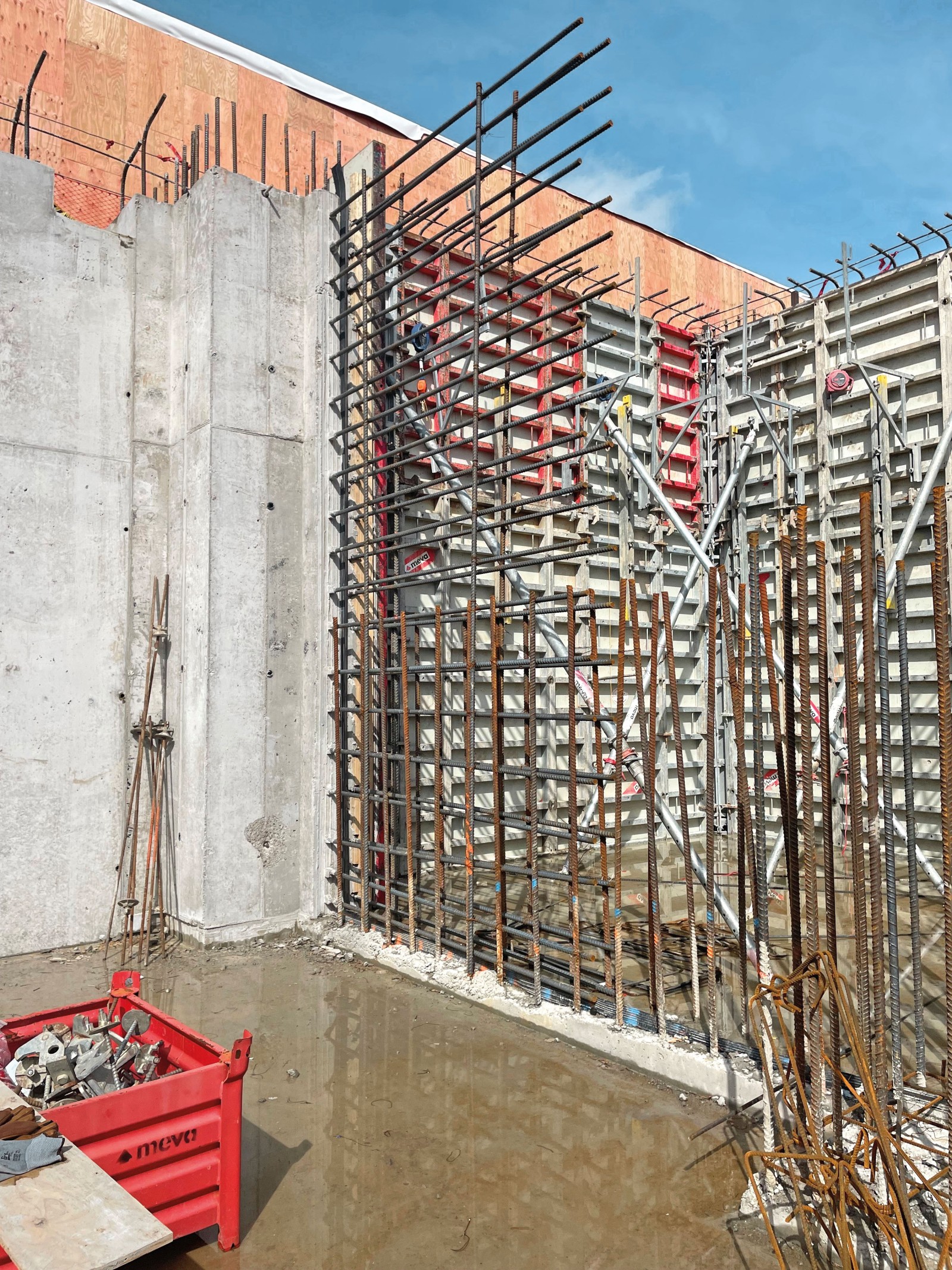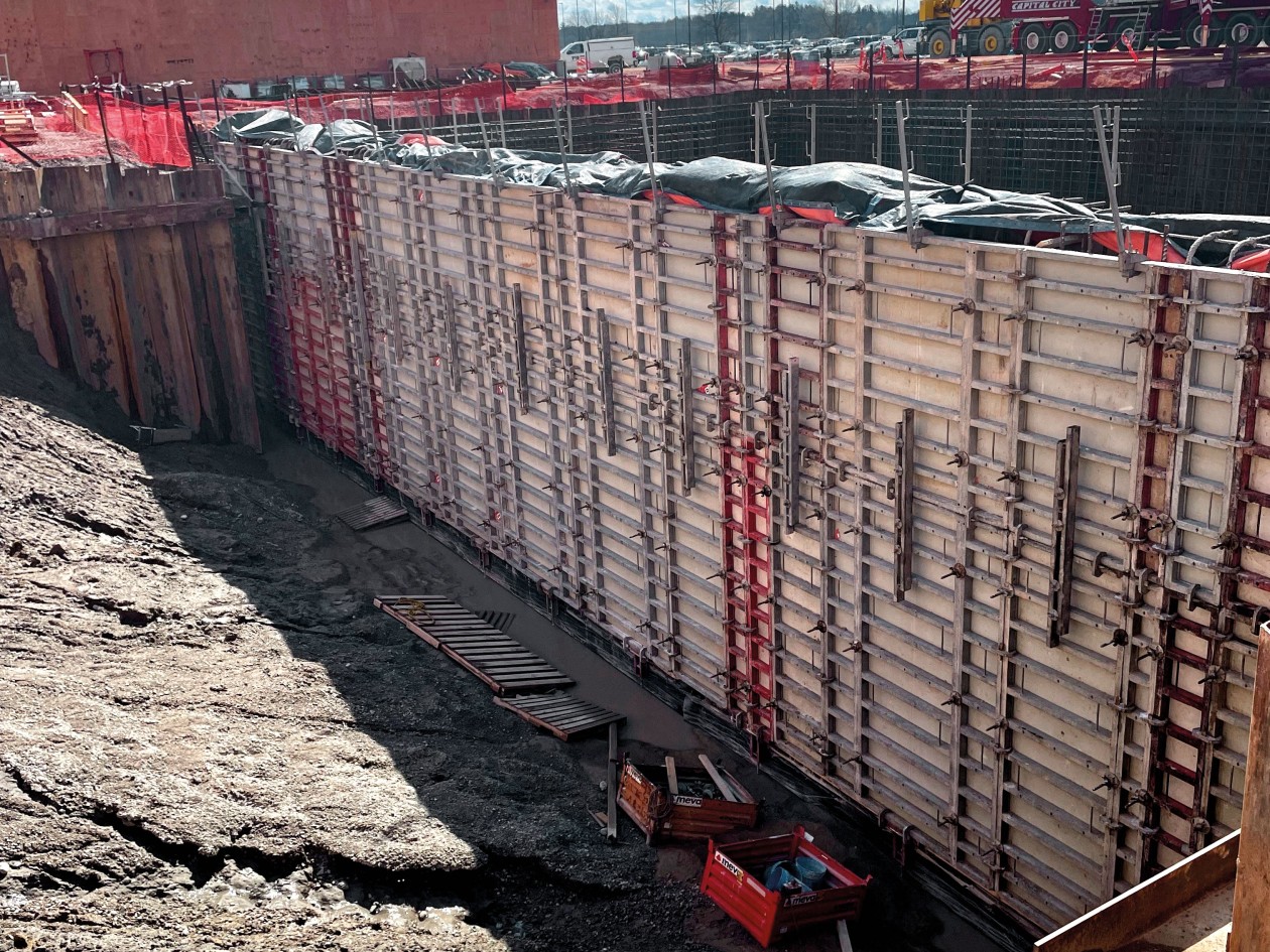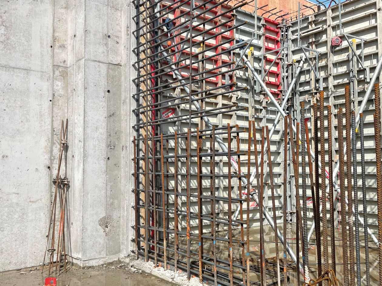 On-site, Fessler & Bowman is leading the concrete construction of the filter press building with the support of MEVA Formwork Systems, which supplied its Imperial wall formwork to tackle the site’s technical and structural requirements. Known for its strength, versatility, and consistent tie patterns, MEVA’s Imperial system enabled fast and efficient forming across complex walls and footings – critical for a high-tech project operating on a fast timeline.