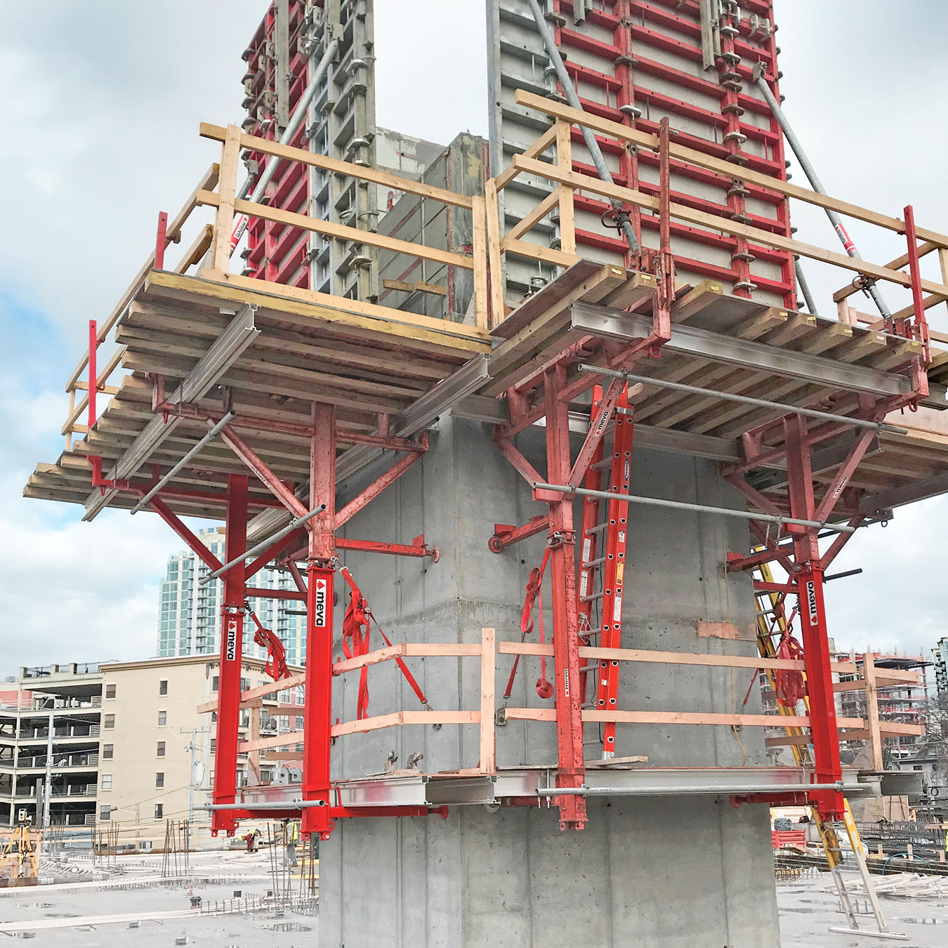 El sistema de trepado guiado MGC-F puede manejar con facilidad geometrías complejas, diferentes tamaños y elementos estructurales desplazados.