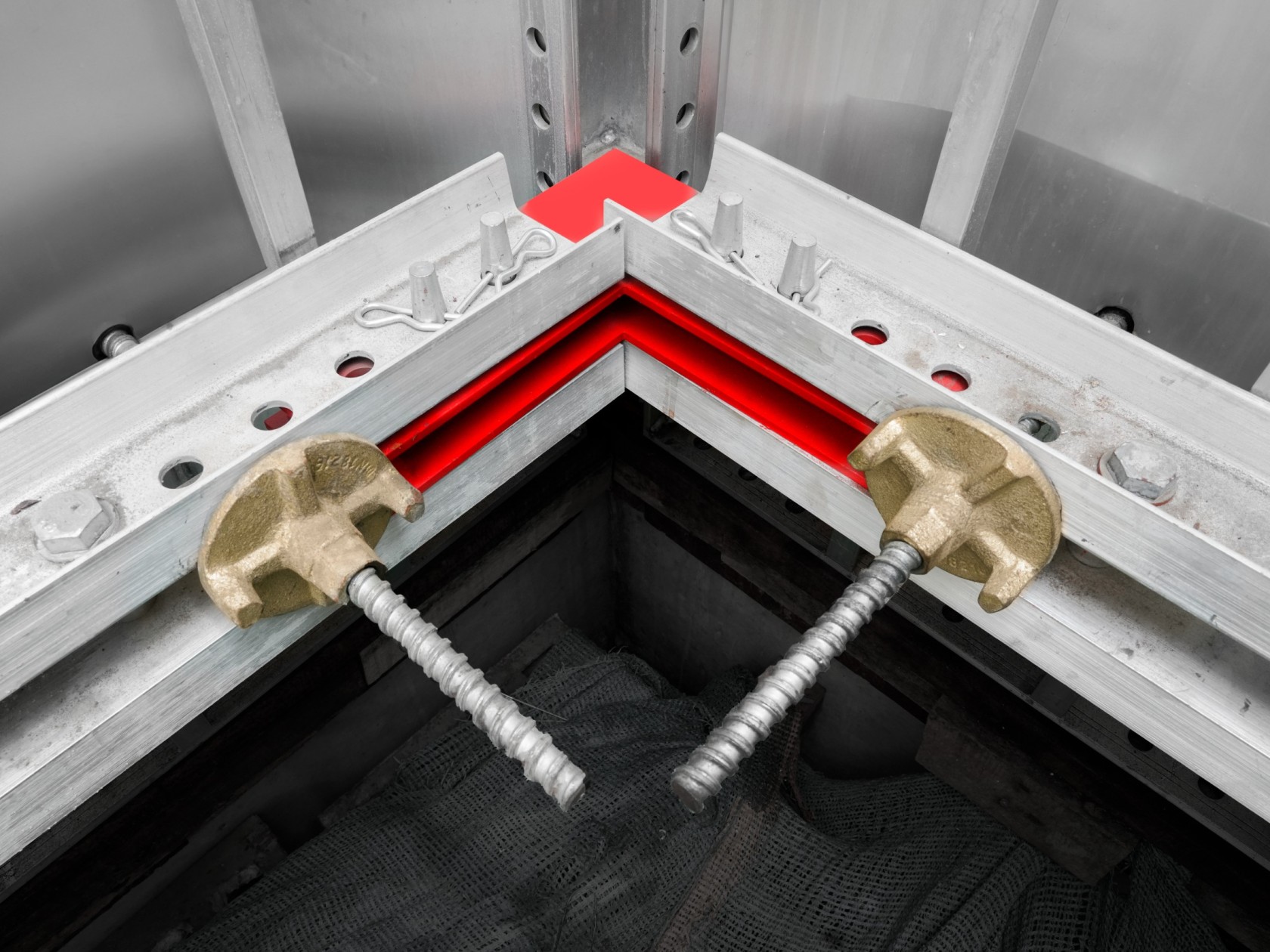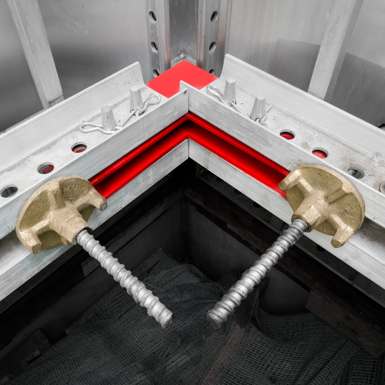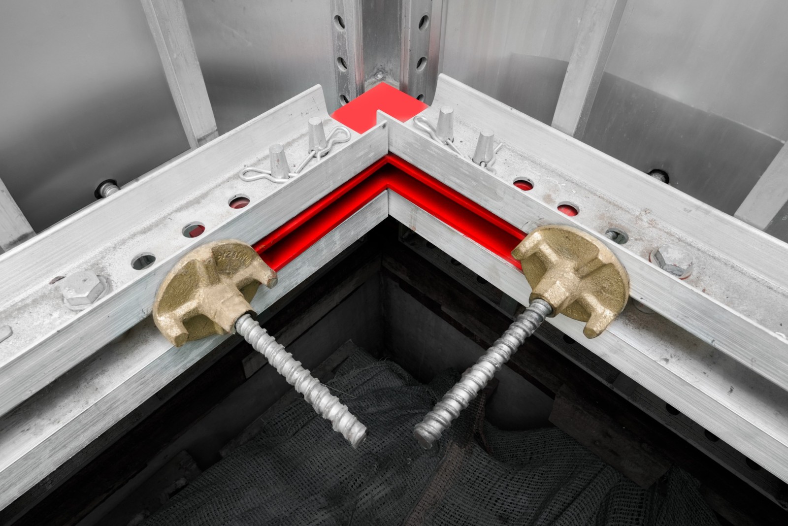 Los rieles de alineacion de aluminio, formados por canales en C de 100 mm de altura, garantizan una alineación precisa de los paneles MonoWal y transfieren de forma segura la presión del concreto a las varillas de anclaje. Cuando se utilizan con las varillas de anclaje, los rieles de alineación eliminan la necesidad de corbatas, haciendo que el proceso de montaje y desmontaje sea más rápido y económico.