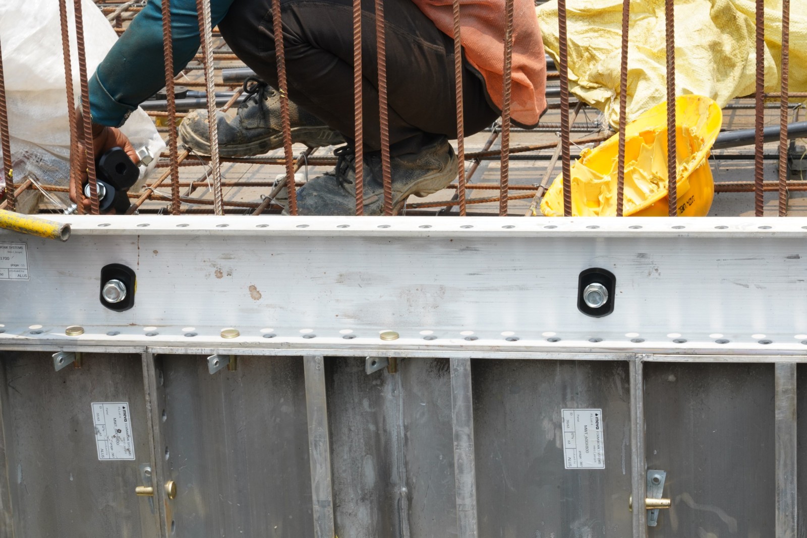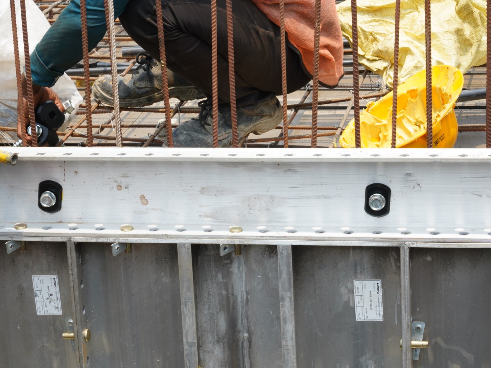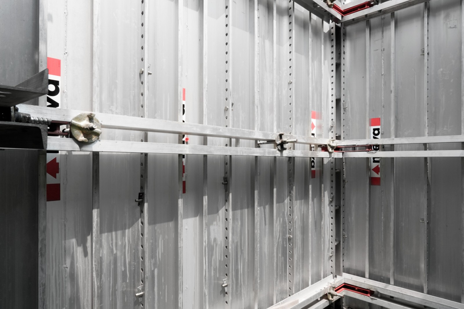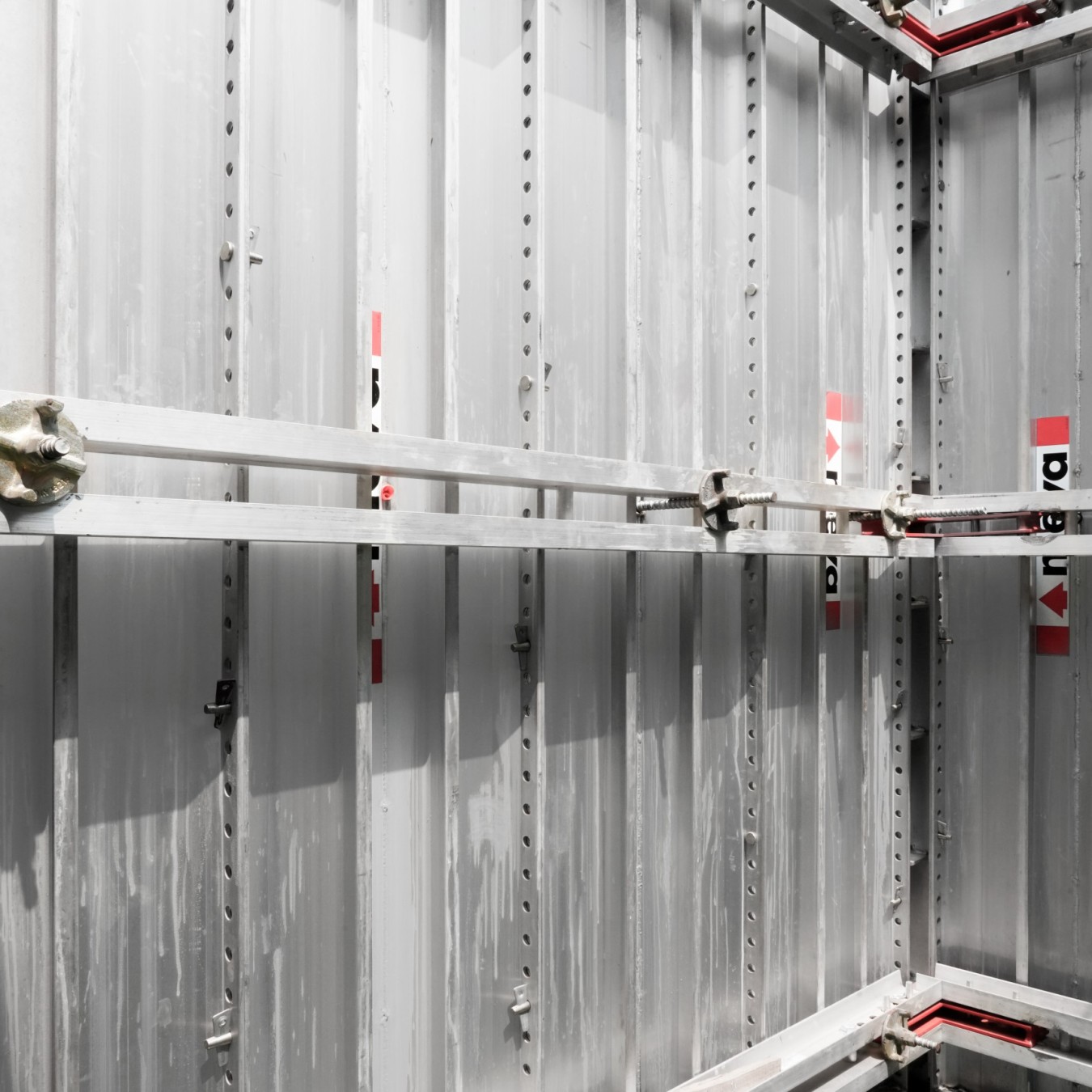Los rieles de alineacion de aluminio, formados por canales en C de 100 mm de altura, garantizan una alineación precisa de los paneles MonoWal y transfieren de forma segura la presión del concreto a las varillas de anclaje. Cuando se utilizan con las varillas de anclaje, los rieles de alineación eliminan la necesidad de corbatas, haciendo que el proceso de montaje y desmontaje sea más rápido y económico.
