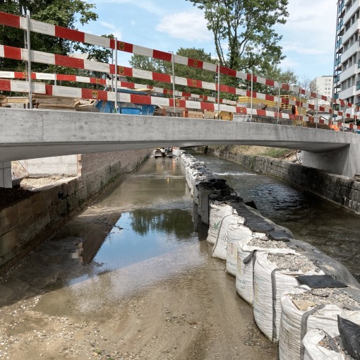 Para lograr fiablemente la alta calidad exigida a las superficies de concreto en la zona visible de la nueva construcción, la dirección de la obra decidió utilizar el encofrado para muros de gran superficie Mammut XT. Este encofrado se caracteriza por su gran eficiencia, por el ahorro de tiempo y por resistir hasta 100 kN/m² de presión de concreto fresco en toda su superficie. También este sistema de MEVA cumplió todas las exigencias del cliente, dejándolo muy satisfecho.