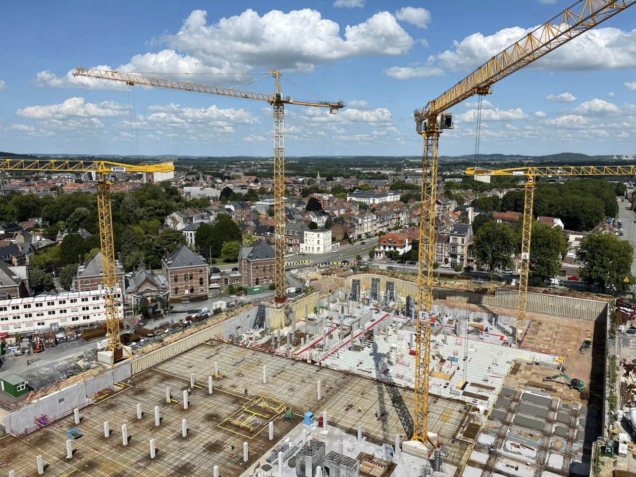 Los desafíos de este proyecto son la premura del tiempo y la compleja logística en la obra y su entorno, situada céntricamente en el concurrido bulevar Lalaing de esta ciudad de 70.000 habitantes. El consorcio de contratistas a cargo de la construcción, conformado por las constructoras Galère, CIT Blaton, Dherte y Tradeco, apuesta por el encofrado para losas MevaDec en combinación con los sistemas de apuntalamiento MEP y MT 60, con el objetivo de ejecutar las losas de concreto pretensado de maneras expeditiva y en la calidad demandada. El trabajo de la obra recibe la asistencia de MEVA BeNeLux en lo referente a la planificación con Revit.