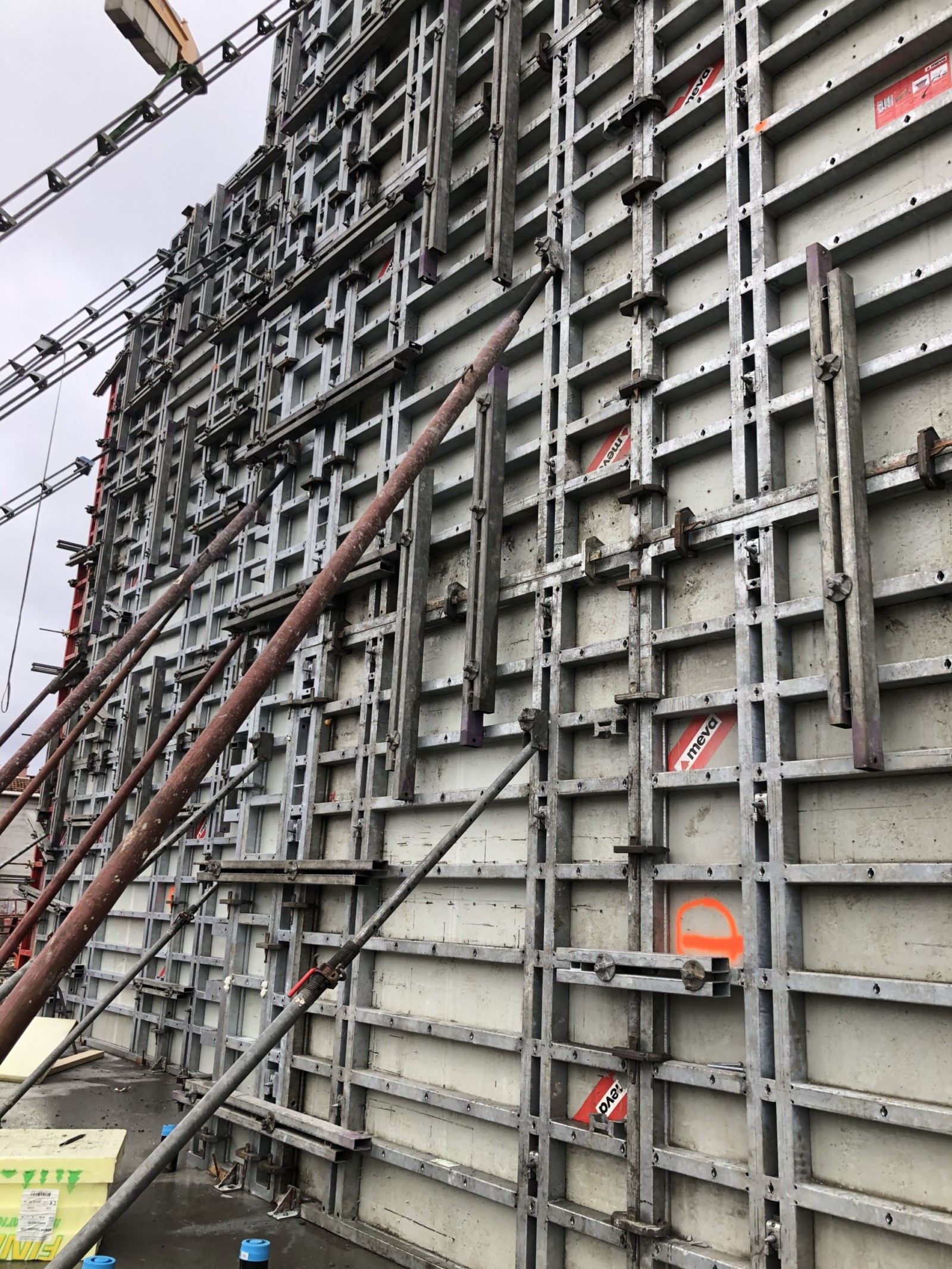 Las dimensiones del muro condicionaron las altas presiones el concreto fresco. Los paneles del sistema Mammut XT resisten la alta presión del concreto fresco de 100 kN/m², lo que supuso una gran ventaja durante este proyecto. Eso permitió realizar grandes secciones de encofrado, al tiempo que se ahorró tiempo considerablemente.