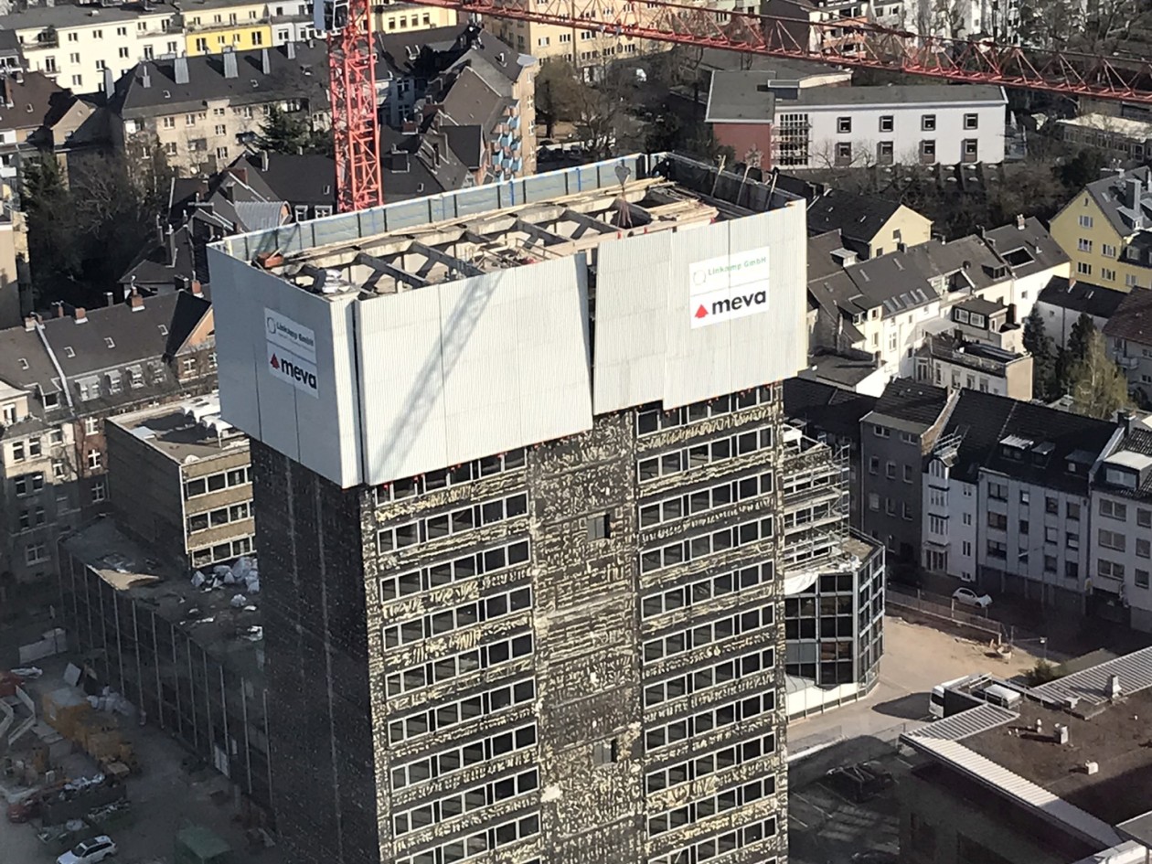 Un edificio de más de 50 años deberá hacer sitio para uno nuevo en el centro de Colonia. Para la proyectada deconstrucción con una solución cerrada, los expertos de Linkamp GmbH utilizaron la plataforma de seguridad guiada por rieles de MEVA (MGS-H), lo que supuso una novedad en Europa.