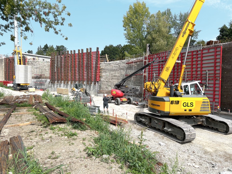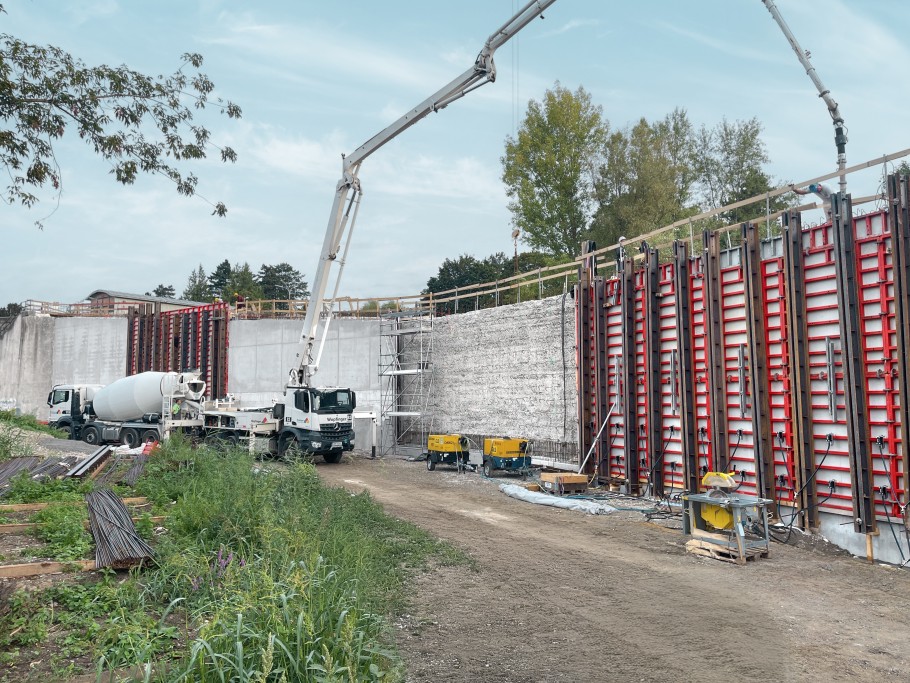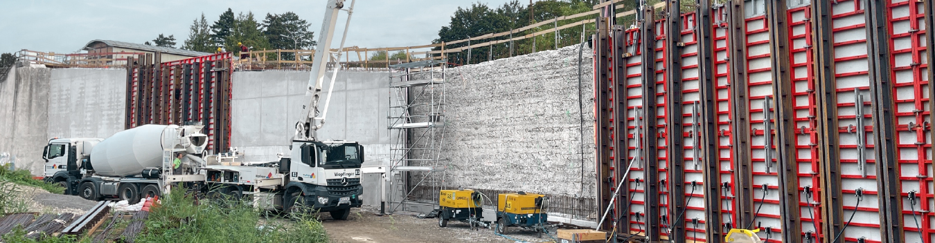 A GLS Bau und Montage GmbH a magas és vastag falak zsaluzásához a MEVA Mammut 350-es, rendkívül robusztus és nagy teherbírású falzsalurendszerét használta, amely teljes felületén megtartja a 100 kN/m² frissbeton nyomást, így gyors és biztonságos munkavégzést tett lehetővé. A MEVA a zsalut közvetlenül az építkezés helyszínére szállította, amelyet a GLS Bau az Ultra Komfort Bérlet keretében használt. Ez a bérleti konstrukció a teljes projekt ideje alatt biztosítja a költségek pontos tervezhetőségét, mert a bérleti díjon és a logisztikán túlmenően minden egyéb szolgáltatást, például a tisztítás és a javítás díját is tartalmazza.