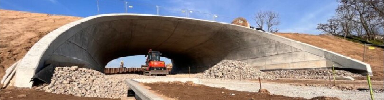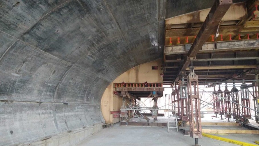 Igazán szemet gyönyörködtető a rendhagyó homorú alagútboltozat, és annak két különböző, trombita- ill. békaszáj alakú bejárata. A MEVA egyedi, különleges zsalu tervező részlege komplexen kidolgozott tervekkel segítette az összetett projekt megvalósítását, amelynek keretében elkészítették a nagy teherbírású állvány-tartószerkezet méretezett terveit is. A gazdaságosságot szem előtt tartva, ahol csak lehetett, az egyedi zsalukat a Mammut 350 keretes falzsaluzattal kombinálták a MEVA mérnökei. Az egyedi zsalu elemeket főként a jól látható területeken, azaz az alagút belsejében használták. Kontrazsaluzatként a Mammut 350-es kitűnően bevált az oldalsó és felső területeken.