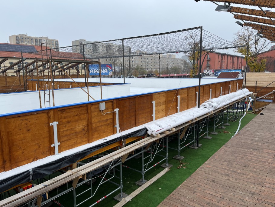 Tervezési szempont volt, hogy gyorsan megépíthető és elbontható műszaki megoldásra volt szükség, amely statikailag is biztonsággal elbírja a jég és a korcsolyázók súlyát, de a legnagyobb igénybevételt jelentő, dinamikusan mozgó háromtonnás jég-regeneráló gép terheit is. Az ideiglenes szerkezet a Meva MT60 állványtornyos-, és a MevaFlex födémzsalus felépítményének ötvözésével épült. A MEVA tervei és statikai számításai alapján a kivitelezés során elvégzett terheléspróbák igazolták a mérnökök munkájának pontosságát, ami kiemelten fontos szempont volt.