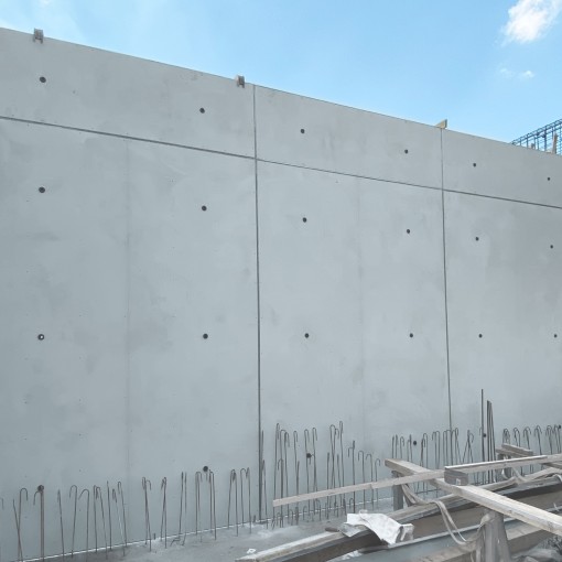 A multifunkciós épület három emeletes és a romok fölé magasodik. A betonfalakkal szembeni követelmények tiszta felületet és szabályos illeszkedést írtak elő. Ahol a régi építménytől csupán néhány centiméterre folyt az építkezés, félkész elemeket használtak. A nagytáblás Mammut 350-es zsaluzatot pedig ott alkalmazták, ahol ezt a helyviszonyok megengedték.