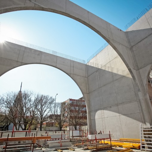 Anhand der von MEVA erarbeiteten Schalungsplanung und der Erstellung einer Betonier-Vorgabe – auf der Basis einer 3-D-Planung des Architekturbüros – konnte die sogenannte „Jahrhundert-Treppe“ pünktlich und zur Zufriedenheit von Architekt, Bauunternehmen und Bauherr realisiert werden.