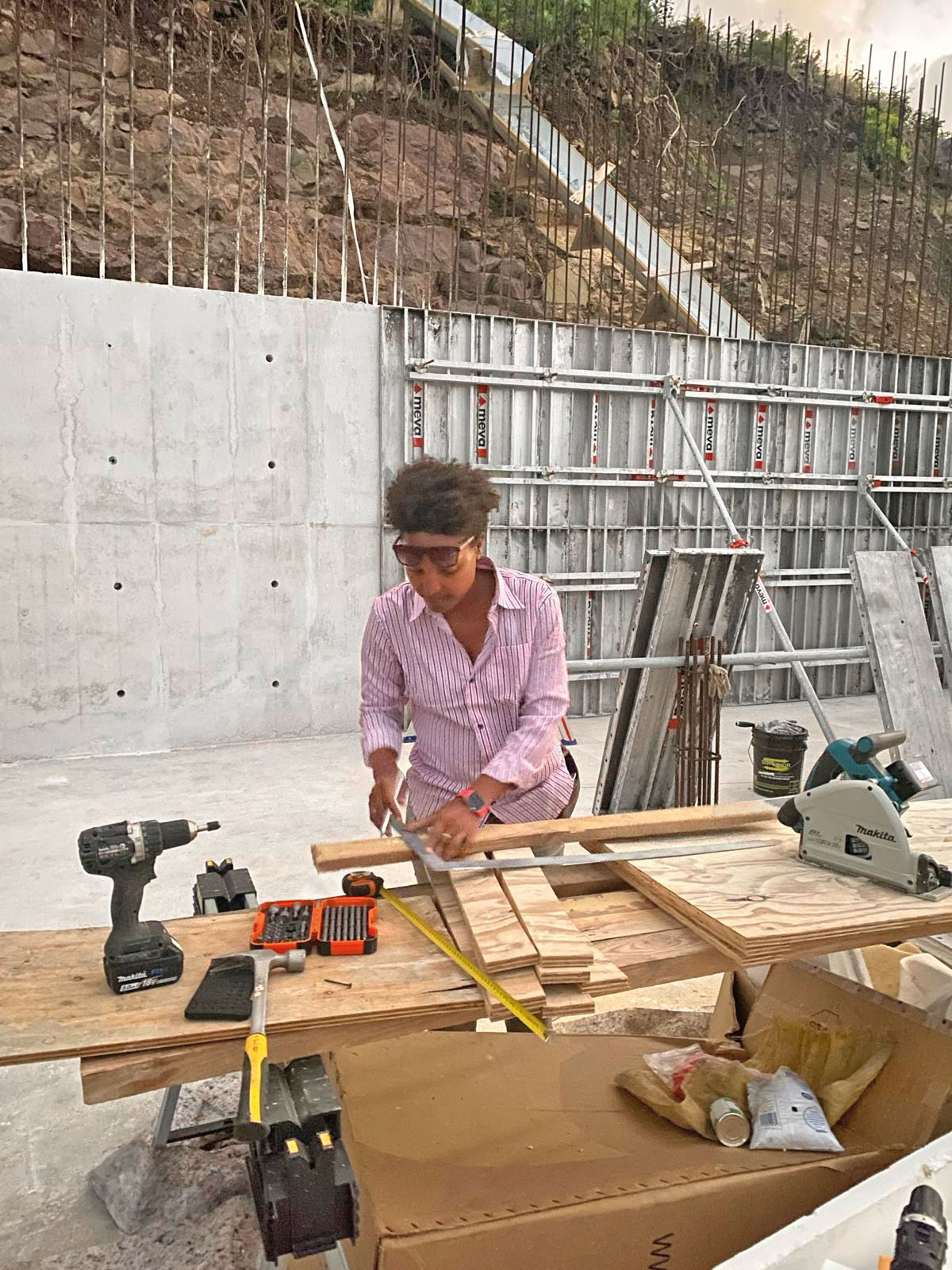 Ze ruilde haar laptop, bureau en vergaderruimtes in voor een hamer, zaag en laserafstandsmeter, vertrok naar Saint Lucia en werkte op haar eigen bouwterrein in plaats van aan berekeningen en concepten voor klanten. Toch heeft ze zelf geen ambachtelijke opleiding gevolgd. “Helaas,” betreurt ze. Haar bachelordiploma in civiele techniek is haar verbinding met de bouwsector.