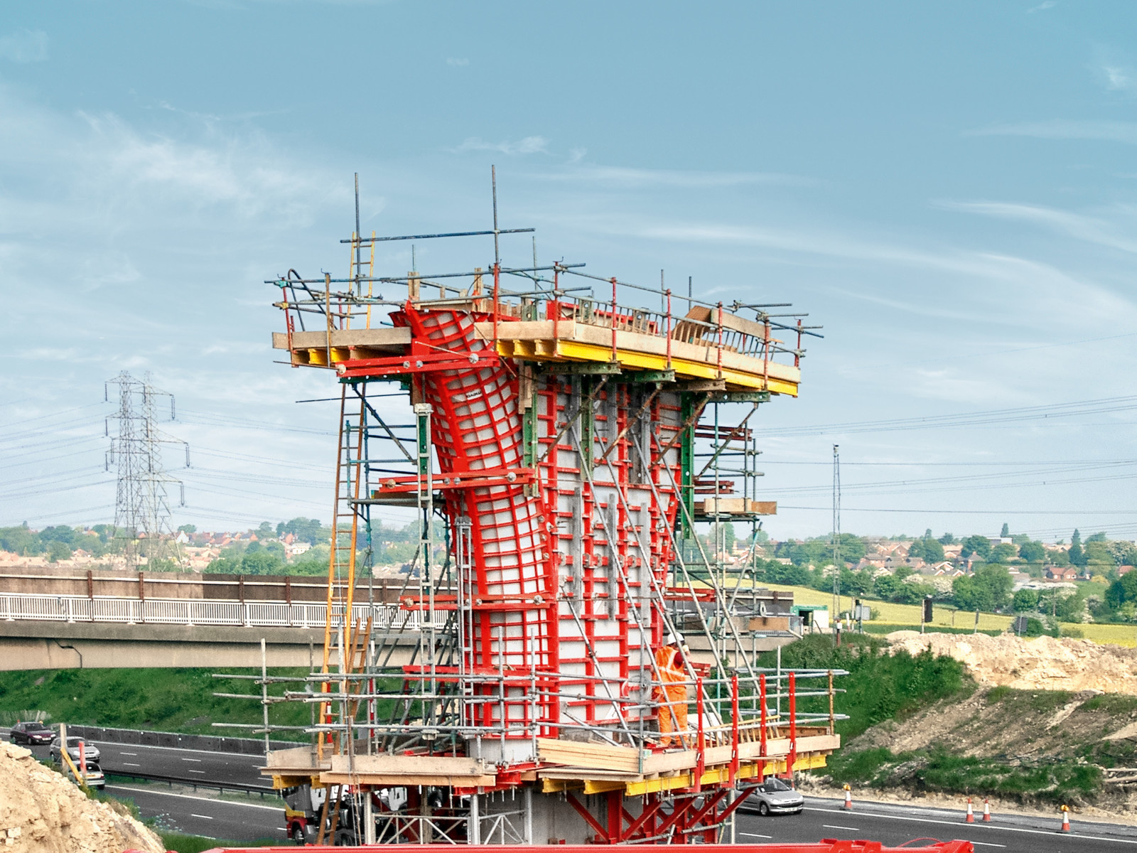 A new interchange and bridge was constructed as part of a motorway upgrade and bespoke formwork is needed to create the bridge piers.
